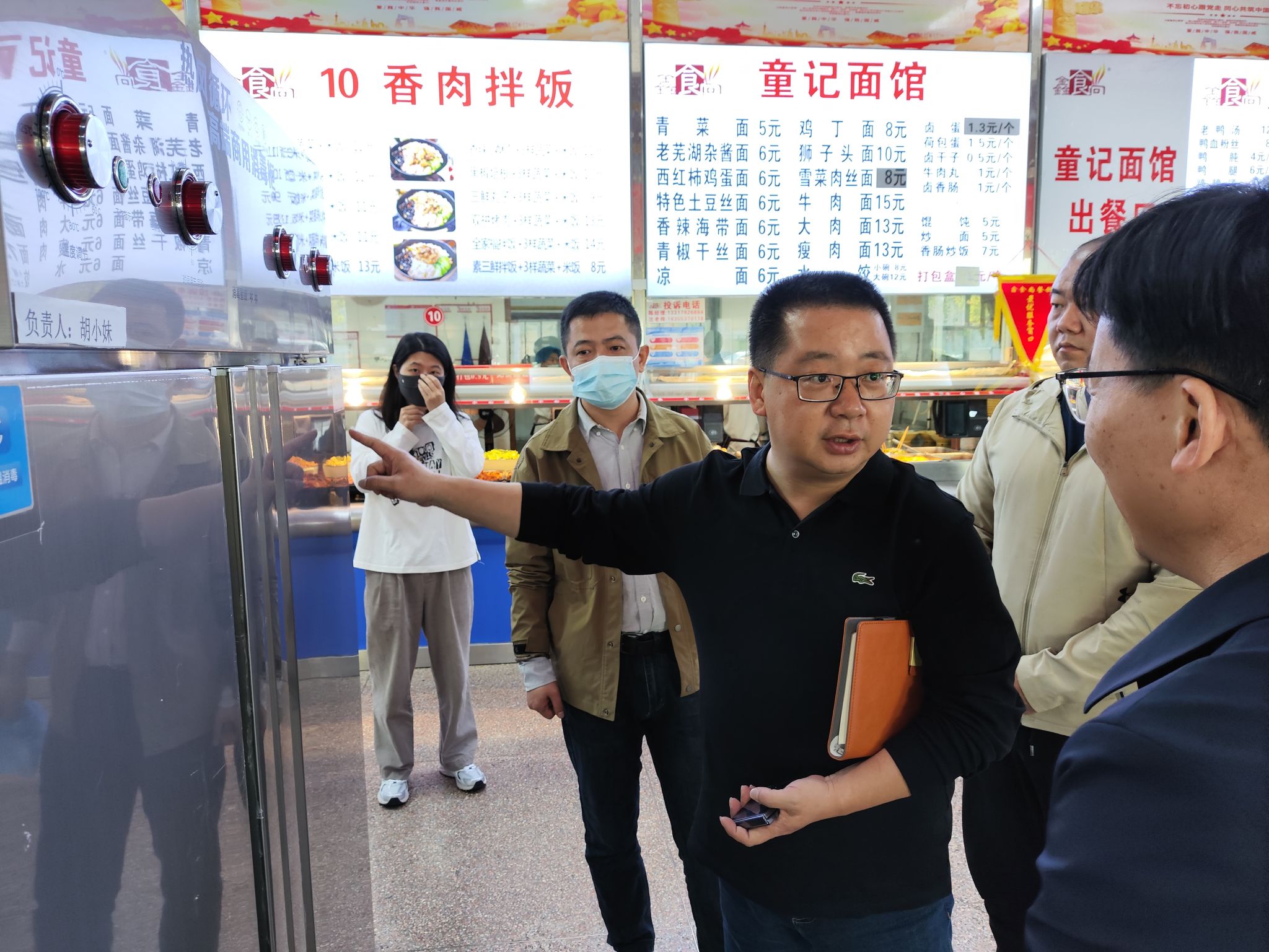 4月24日芜湖市市场监督管理局党委委员、副局长钟敏带队对我校文津校区开展“五一”节前现场检查食品安全工作。总务处处长孙万根及相关人员陪同检查。