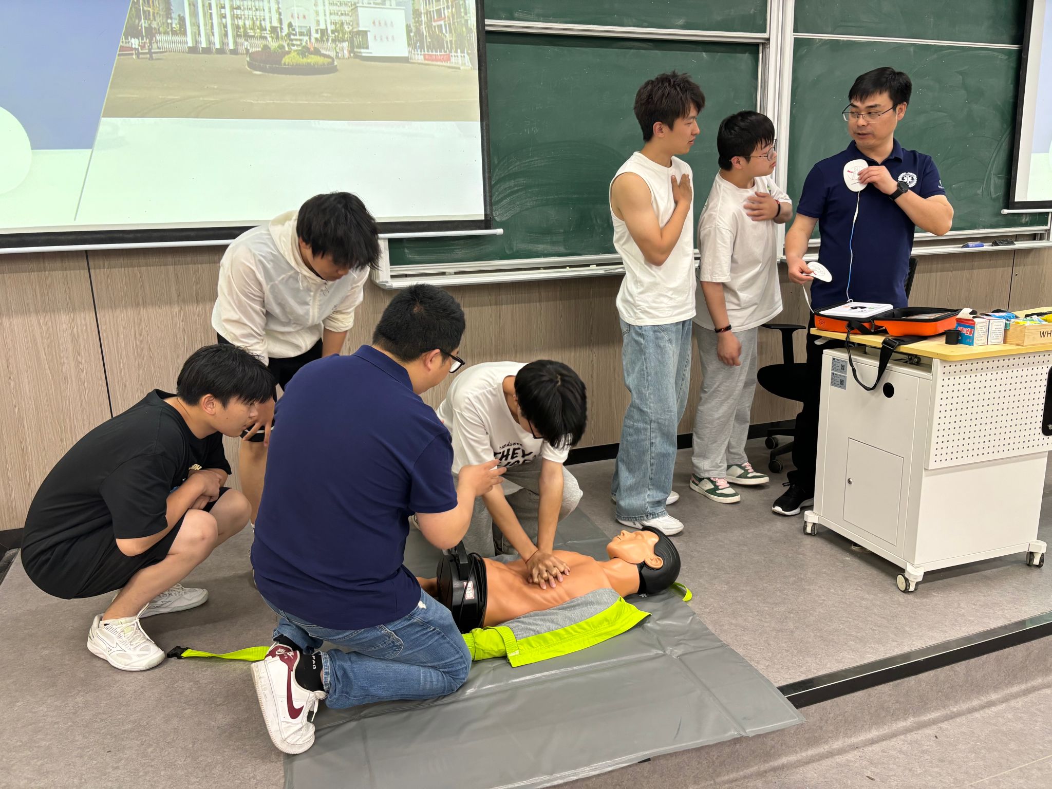 健康知识讲座环节,授课专家为学生系统地讲解了皮肤护理、运动损伤判断处理、消化道疾病日常治疗、心肺复苏应急救护等与学生密切相关的医学知识,并通过现场示范、邀请学生上台操作等形式,直观演示了心肺复苏、AED使用等急救技能,内容深受学生欢迎。