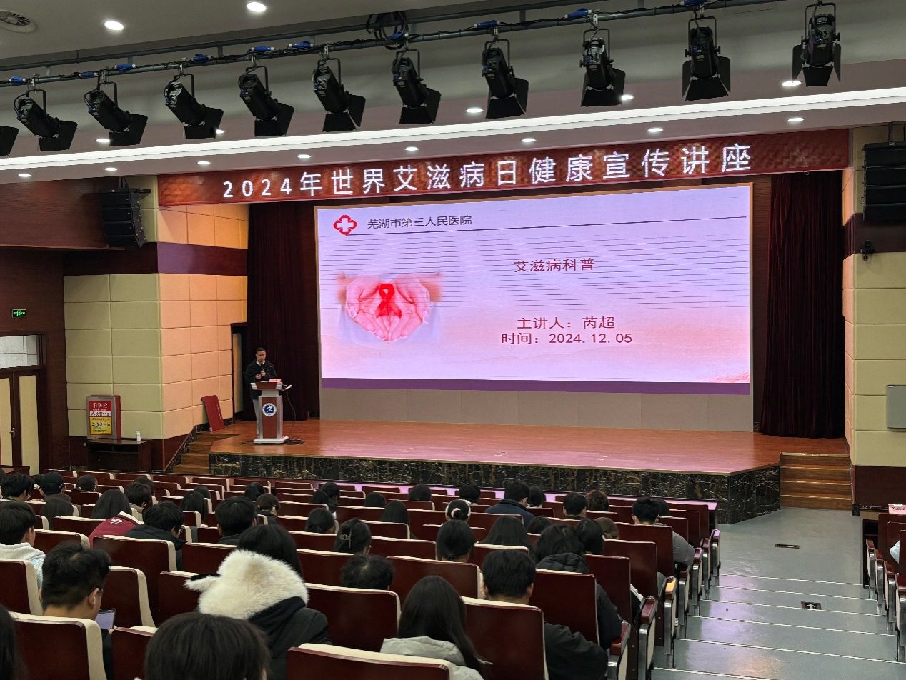 2024年12月1日是第37个“世界艾滋病日”,为进一步加强宣传力度、提高学生对艾滋病等传染病防治知识认识水平和自我保护意识,总务处联合农工党芜湖职业技术学院支部邀请市第三人民医院专家为师生开展艾滋病和结核病防治知识讲座,讲座于12月4日、5日分别在银湖校区、文津校区举办,每场讲座有300多名师生到场参加。